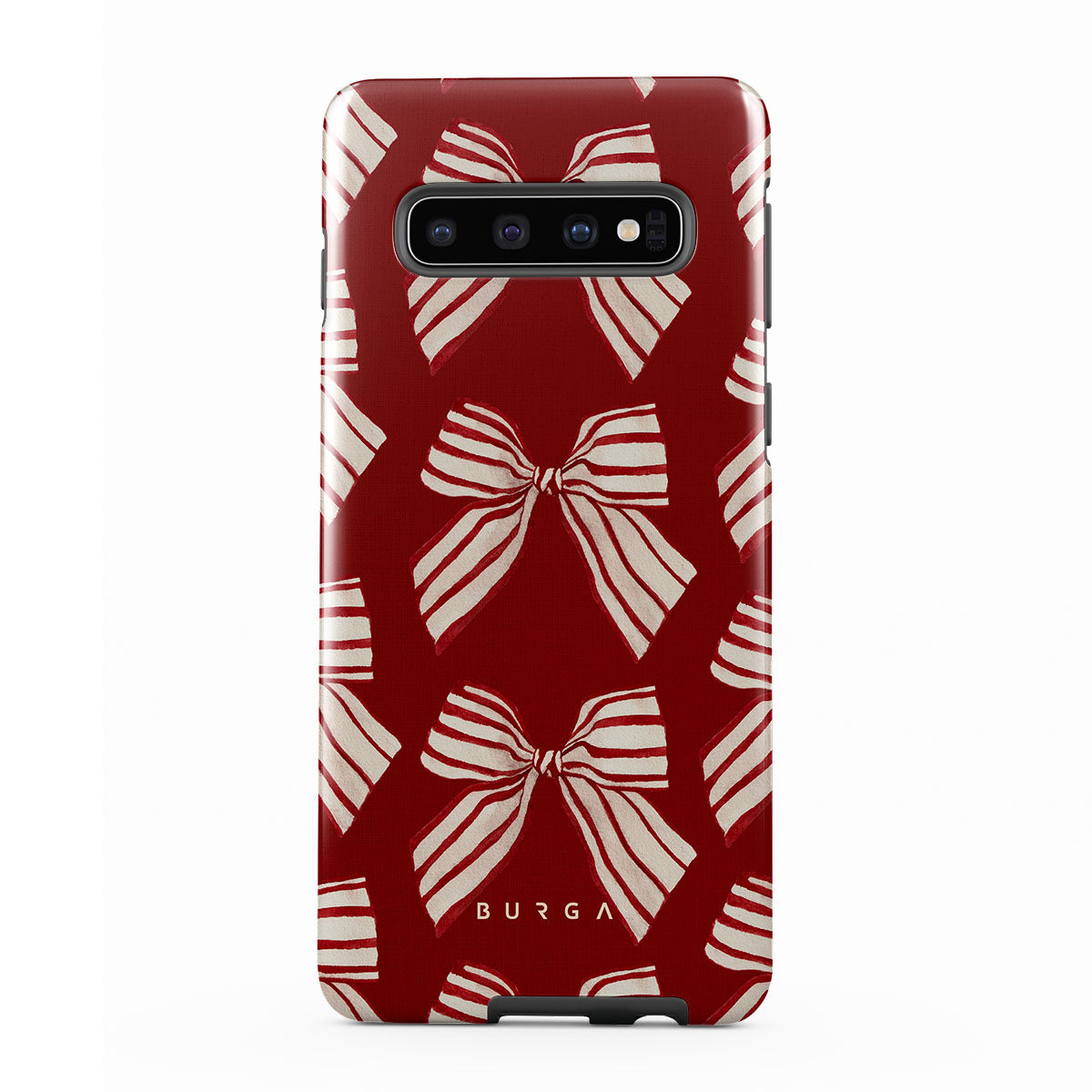Ribbon-wrapped and ready to go. This Samsung Galaxy S10 4G phone casefeels like the moment right before tearing into the biggest gift under the tree. Our Special Delivery design captures the excitement of unwrapping holiday surprises. Every glance is a reminder that the best gifts are the ones wrapped with love.