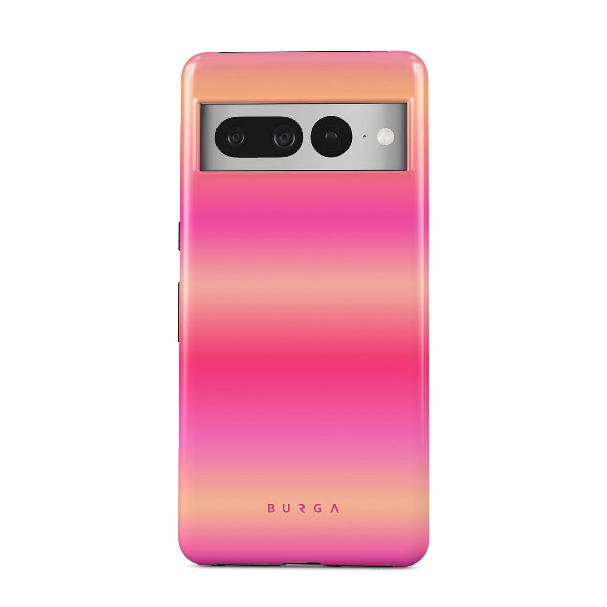 Introducing SPF100—a Google Pixel 7 Pro phone case that's as hot as a summer's day. Featuring a gradient of vivid pinks and warm oranges, this design radiates bold, vibrant energy, reminiscent of sun-kissed skin and tropical getaways.