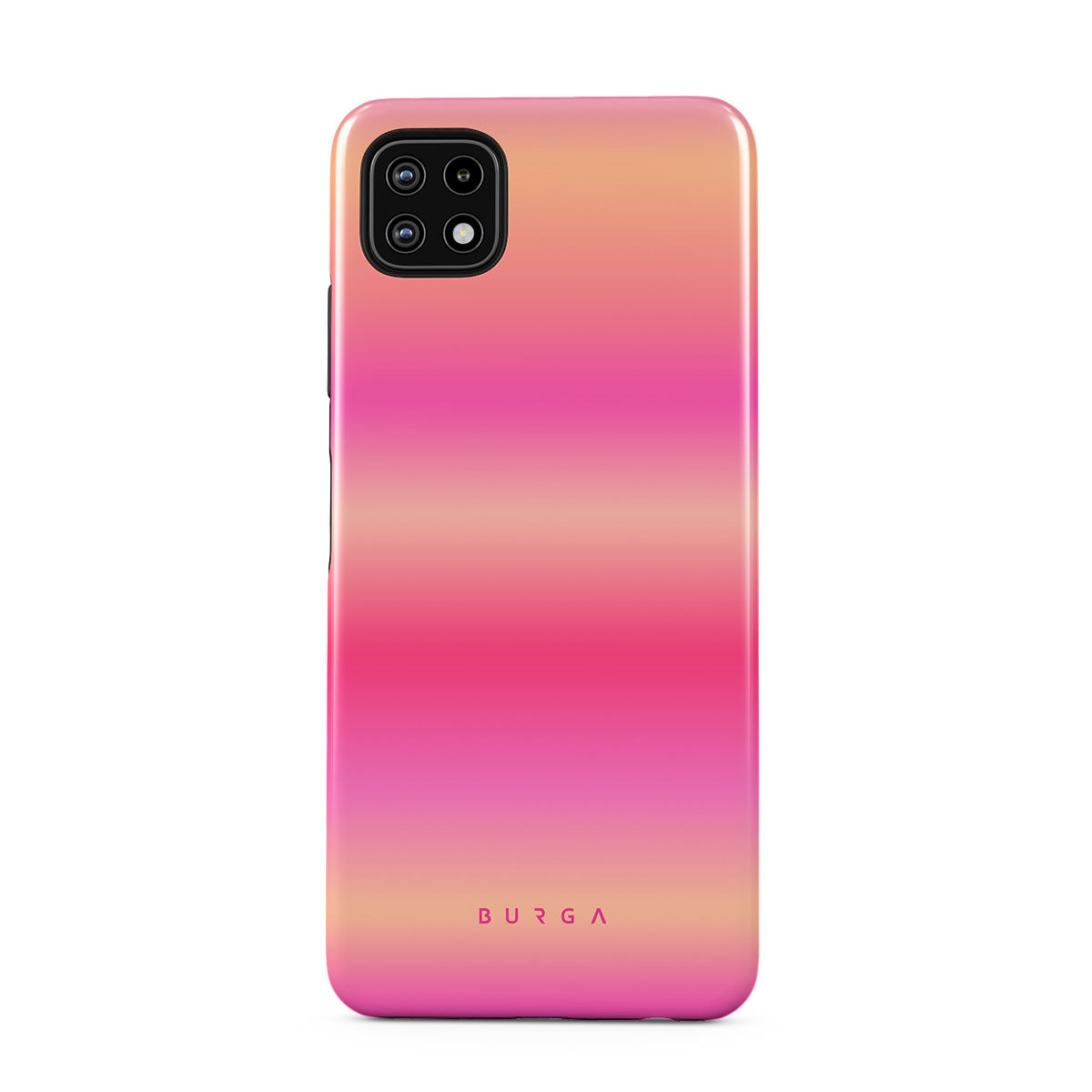 Introducing SPF100—a Samsung Galaxy A22 5G phone case that's as hot as a summer's day. Featuring a gradient of vivid pinks and warm oranges, this design radiates bold, vibrant energy, reminiscent of sun-kissed skin and tropical getaways.