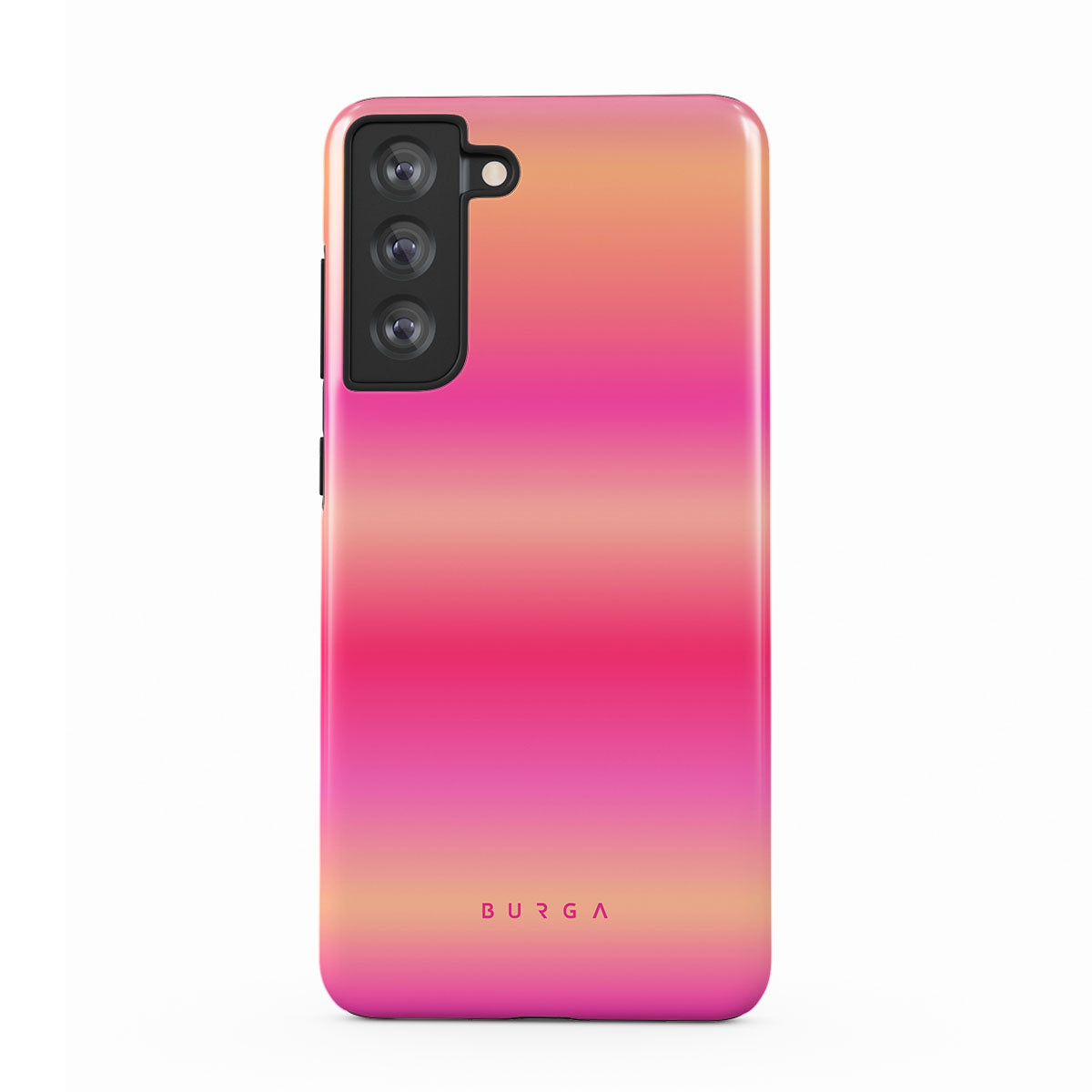 Introducing SPF100—a Samsung Galaxy S21 FE phone case that's as hot as a summer's day. Featuring a gradient of vivid pinks and warm oranges, this design radiates bold, vibrant energy, reminiscent of sun-kissed skin and tropical getaways.
