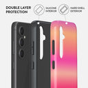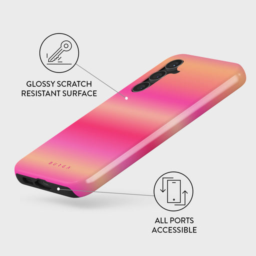Introducing SPF100—a Samsung Galaxy S23 FE phone case that's as hot as a summer's day. Featuring a gradient of vivid pinks and warm oranges, this design radiates bold, vibrant energy, reminiscent of sun-kissed skin and tropical getaways.