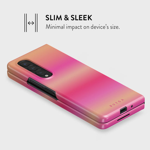 Introducing SPF100—a Samsung Galaxy Z Fold 4 phone case that's as hot as a summer's day. Featuring a gradient of vivid pinks and warm oranges, this design radiates bold, vibrant energy, reminiscent of sun-kissed skin and tropical getaways.