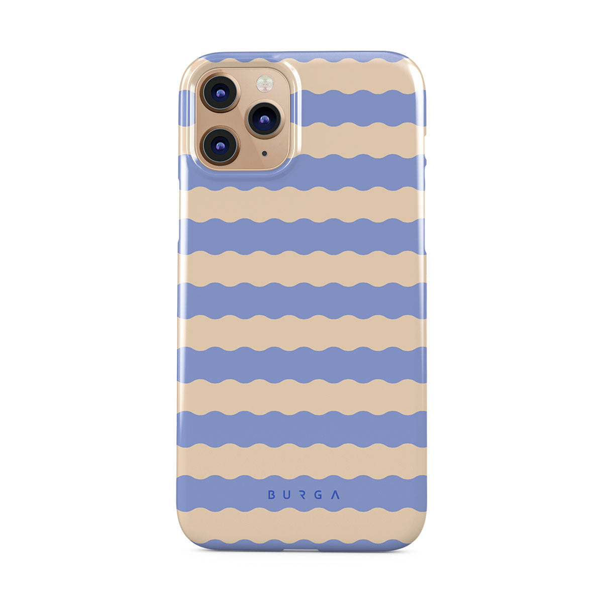 Dive into the cool, refreshing style of our Splash design–a dynamic iPhone 11 Pro Max phone case featuring playful, wavy stripes of serene ocean blue and soft sandy beige. Perfect for those who love to make a splash with their accessories.