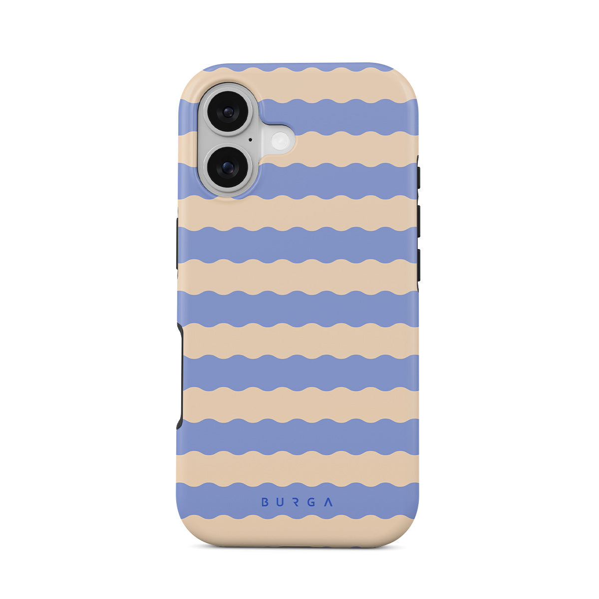 Dive into the cool, refreshing style of our Splash design–a dynamic iPhone 17 phone case featuring playful, wavy stripes of serene ocean blue and soft sandy beige. Perfect for those who love to make a splash with their accessories.