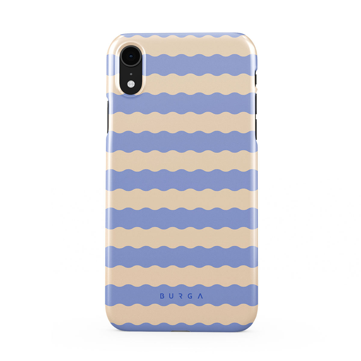 Dive into the cool, refreshing style of our Splash design–a dynamic iPhone XR phone case featuring playful, wavy stripes of serene ocean blue and soft sandy beige. Perfect for those who love to make a splash with their accessories.