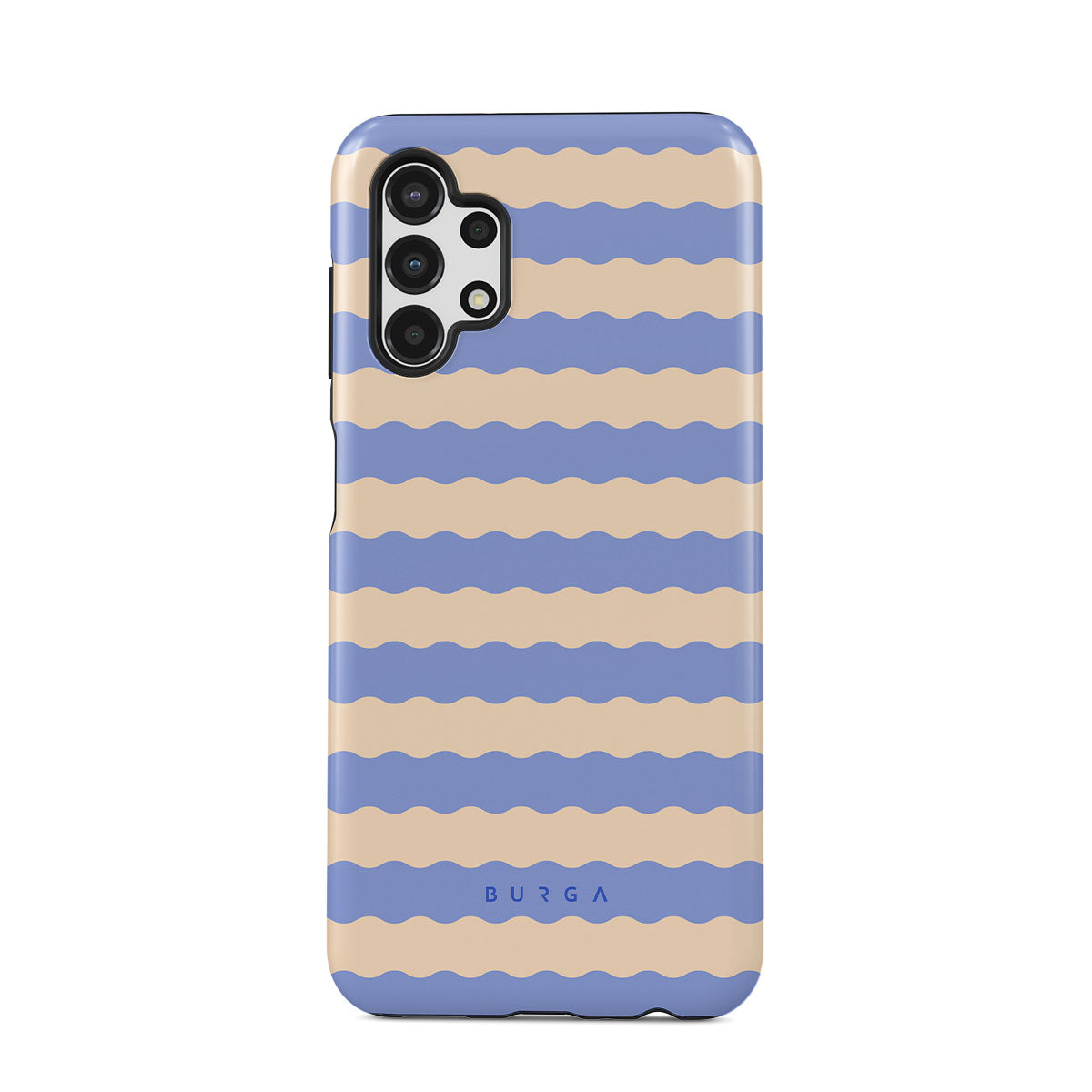 Dive into the cool, refreshing style of our Splash design–a dynamic Samsung Galaxy A13 4G phone case featuring playful, wavy stripes of serene ocean blue and soft sandy beige. Perfect for those who love to make a splash with their accessories.