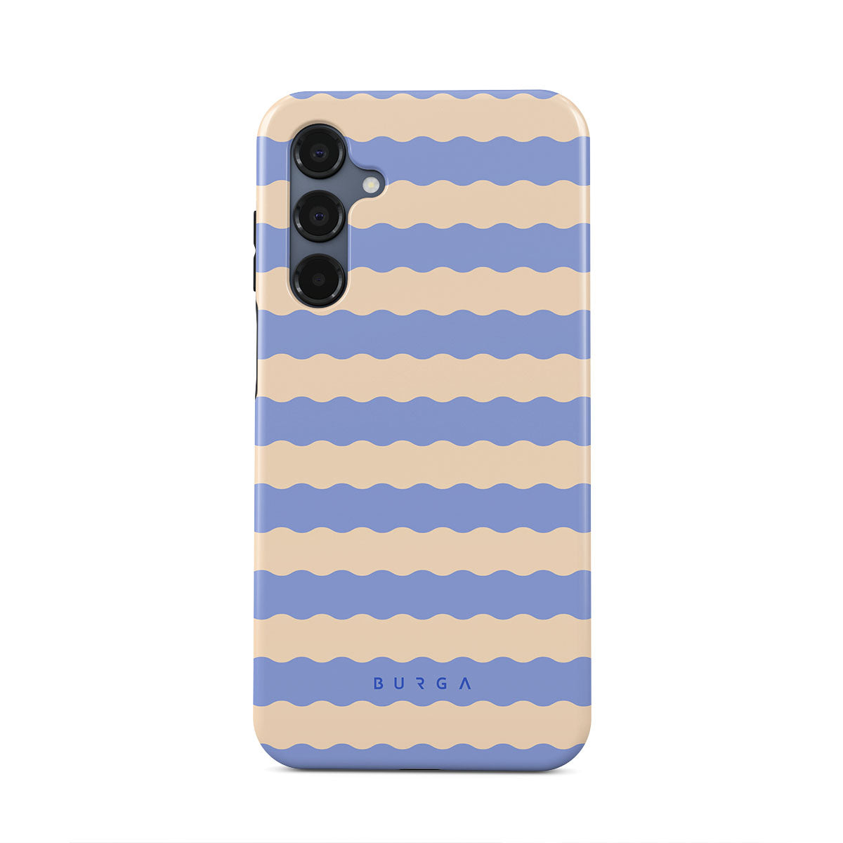 Dive into the cool, refreshing style of our Splash design–a dynamic Samsung Galaxy A16 phone case featuring playful, wavy stripes of serene ocean blue and soft sandy beige. Perfect for those who love to make a splash with their accessories.