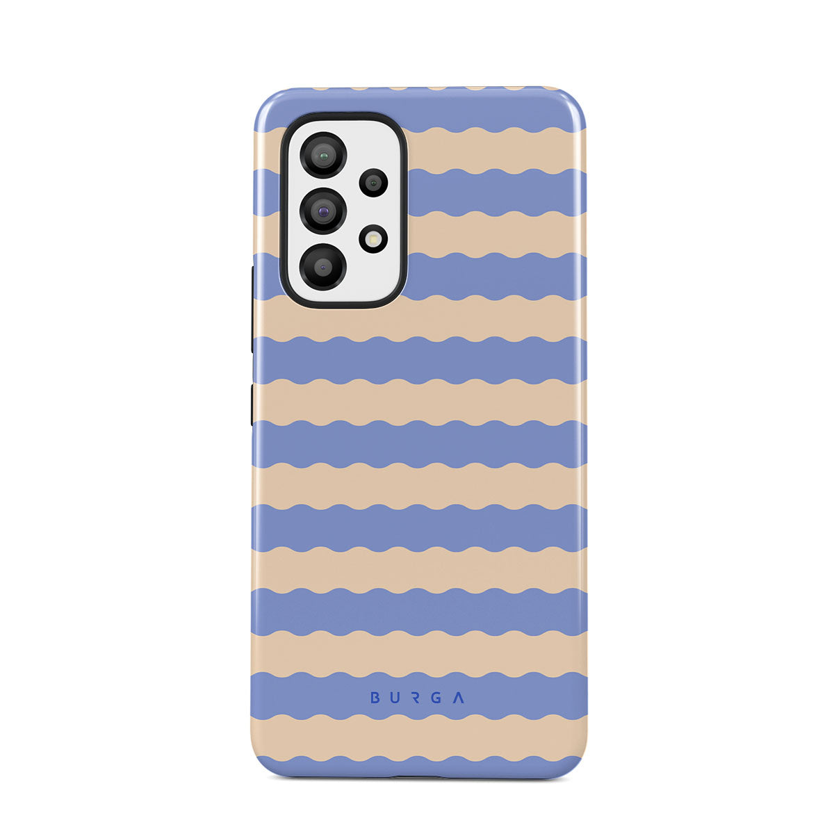 Dive into the cool, refreshing style of our Splash design–a dynamic Samsung Galaxy A33 phone case featuring playful, wavy stripes of serene ocean blue and soft sandy beige. Perfect for those who love to make a splash with their accessories.