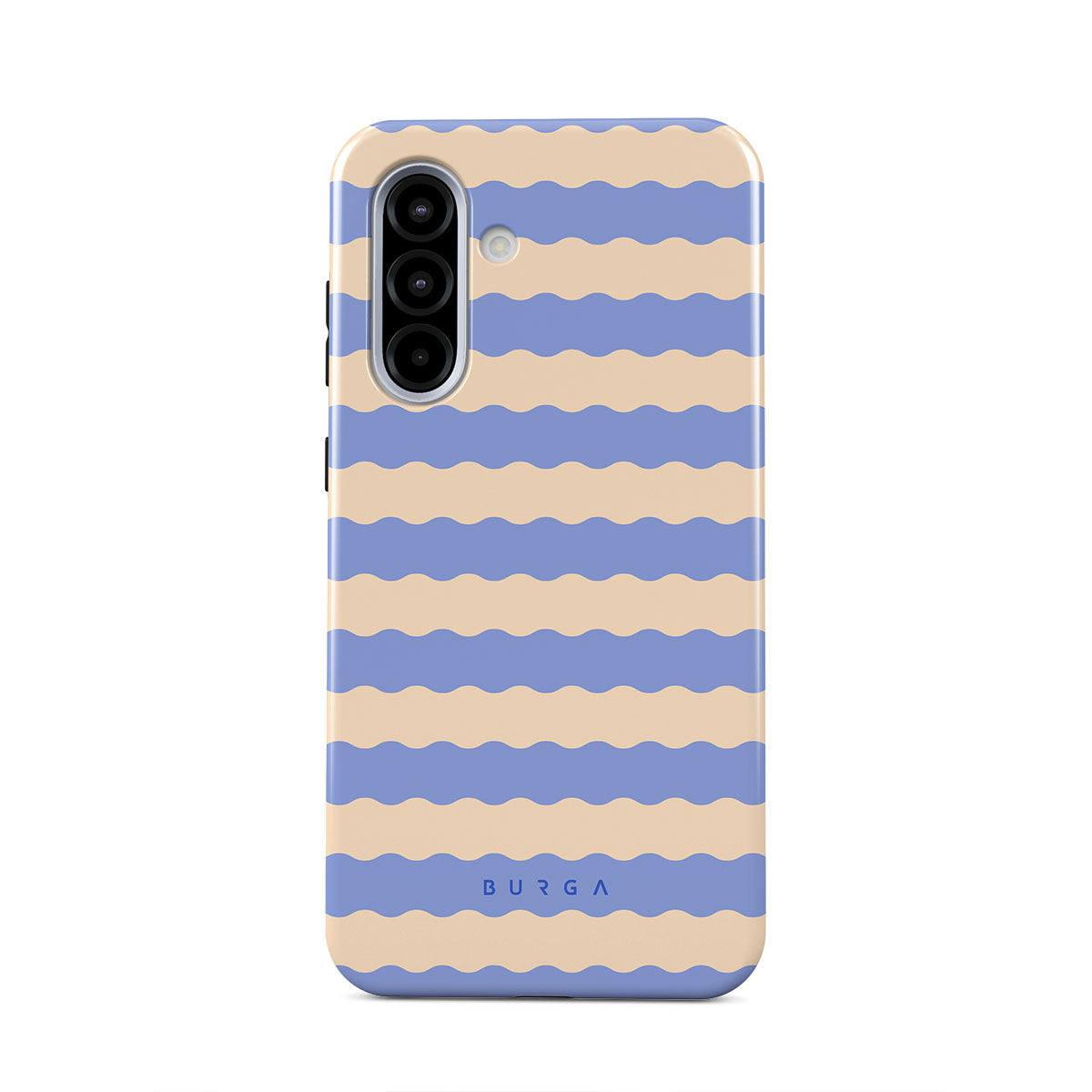 Dive into the cool, refreshing style of our Splash design–a dynamic Samsung Galaxy A36 5G phone case featuring playful, wavy stripes of serene ocean blue and soft sandy beige. Perfect for those who love to make a splash with their accessories.