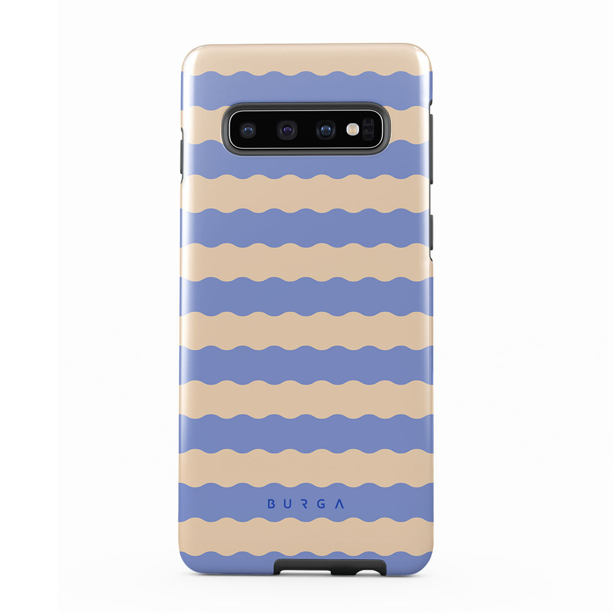 Dive into the cool, refreshing style of our Splash design–a dynamic Samsung Galaxy S10 4G phone case featuring playful, wavy stripes of serene ocean blue and soft sandy beige. Perfect for those who love to make a splash with their accessories.