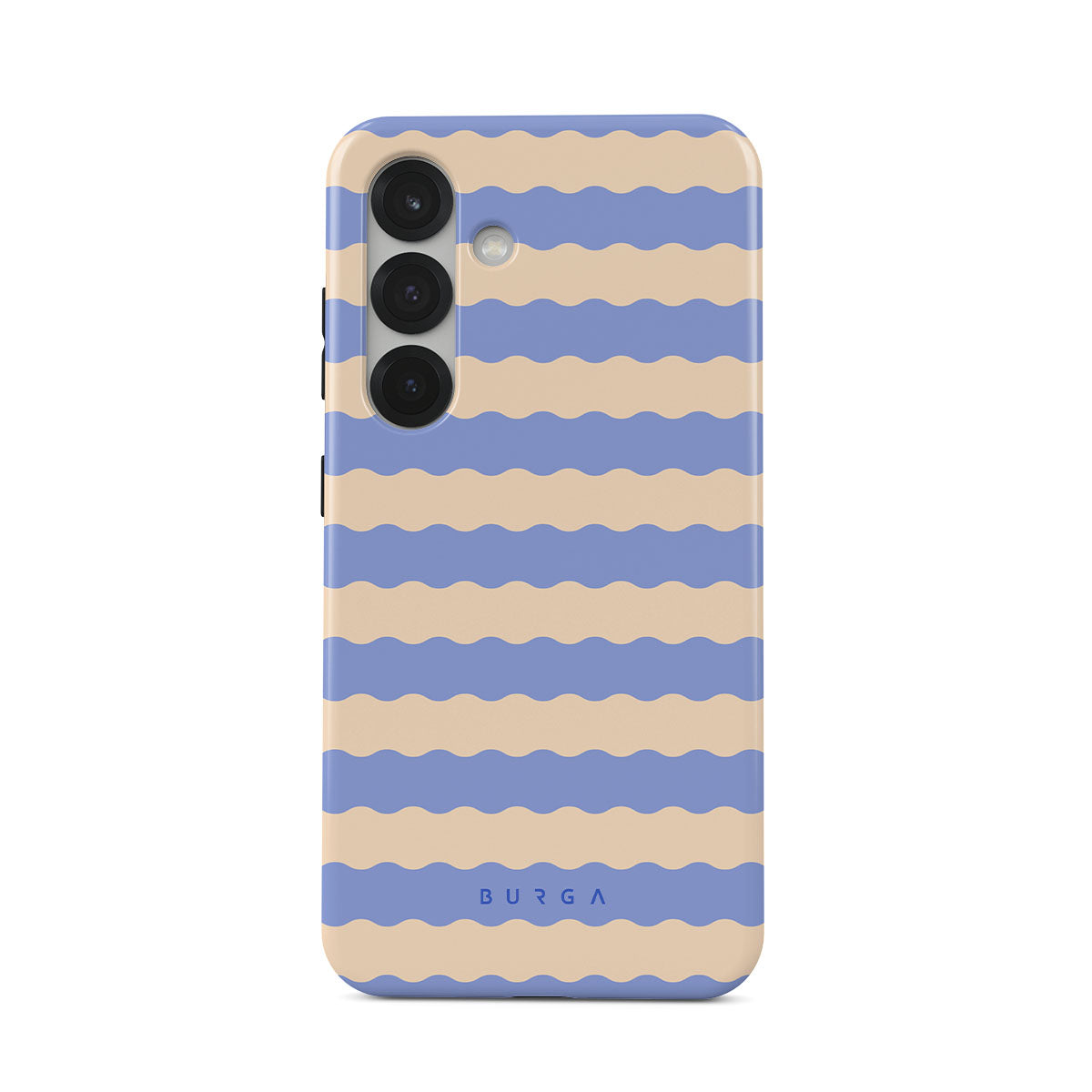 Dive into the cool, refreshing style of our Splash design–a dynamic Samsung Galaxy S25 Plus phone case featuring playful, wavy stripes of serene ocean blue and soft sandy beige. Perfect for those who love to make a splash with their accessories.