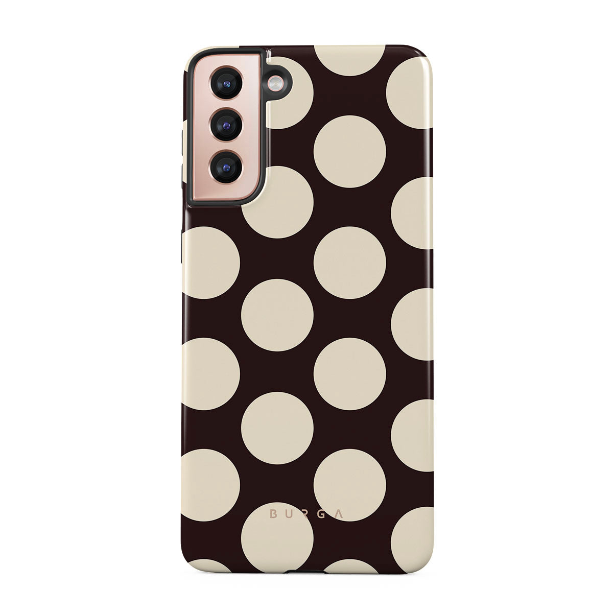 This Samsung Galaxy S21 Plus phone case design hits harder than your third espresso shot. Chunky dots, zero chill, and a deeply unnecessary amount of confidence.