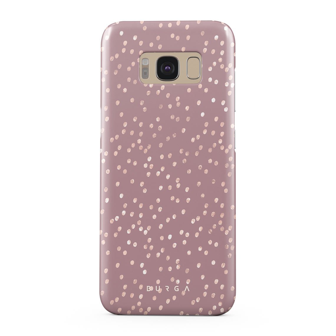 Trendy mauve color as a background for the gold-colored spots creates true beauty. Make your Samsung Galaxy S8 stand out with our protective and pretty Hot Cocoa phone case. The spotted pattern adds a touch of luxury to your phone, while the case's hard-shell nature offers much-needed protection.