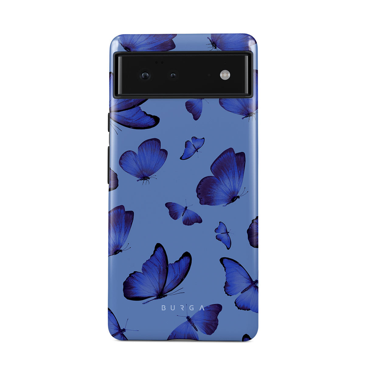 Bright blue butterflies dance across a sky-blue expanse, a visual representation of freedom and transformation. Our Spring Court Google Pixel 6a phone case design symbolizes the soul's eternal dance with change, each flutter a step towards becoming who we are meant to be.