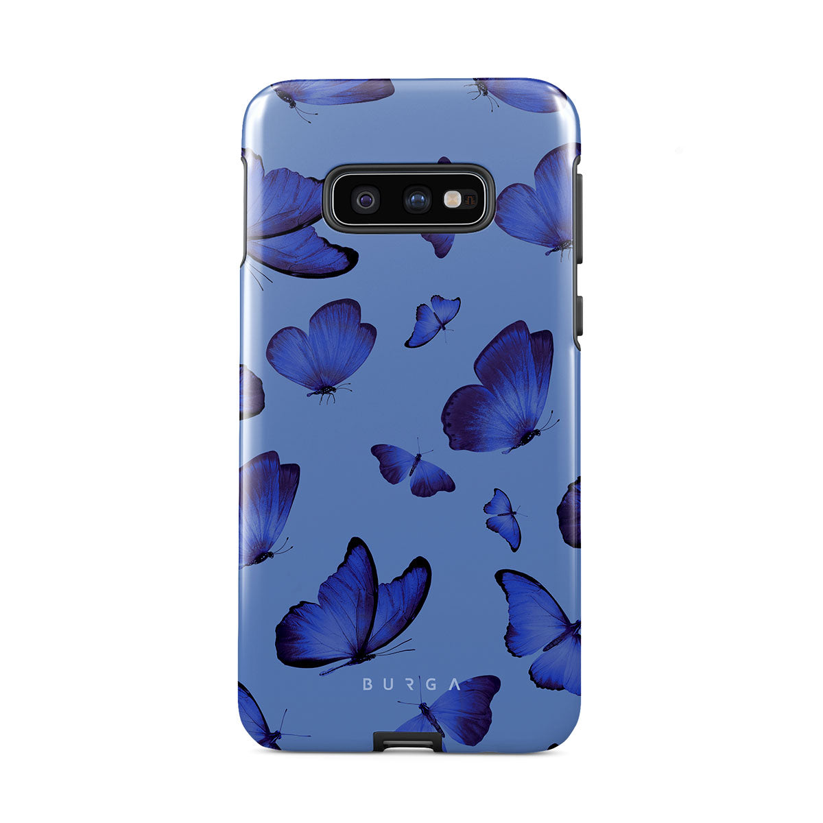 Bright blue butterflies dance across a sky-blue expanse, a visual representation of freedom and transformation. Our Spring Court Samsung Galaxy S10E phone case design symbolizes the soul's eternal dance with change, each flutter a step towards becoming who we are meant to be.