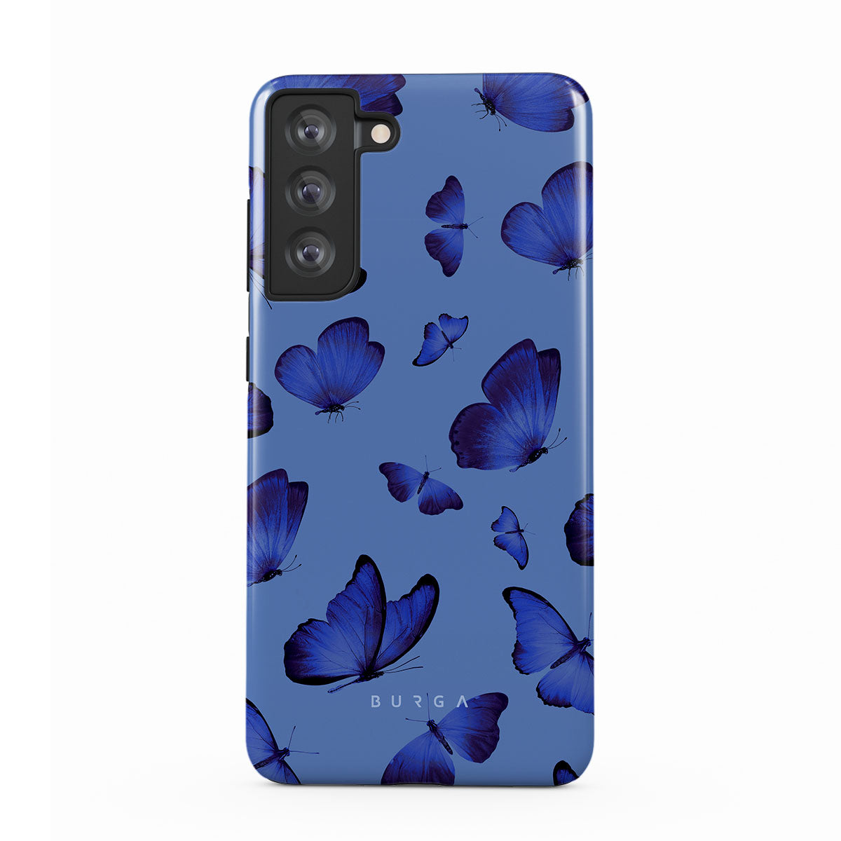 Bright blue butterflies dance across a sky-blue expanse, a visual representation of freedom and transformation. Our Spring Court Samsung Galaxy S21 FE phone case design symbolizes the soul's eternal dance with change, each flutter a step towards becoming who we are meant to be.