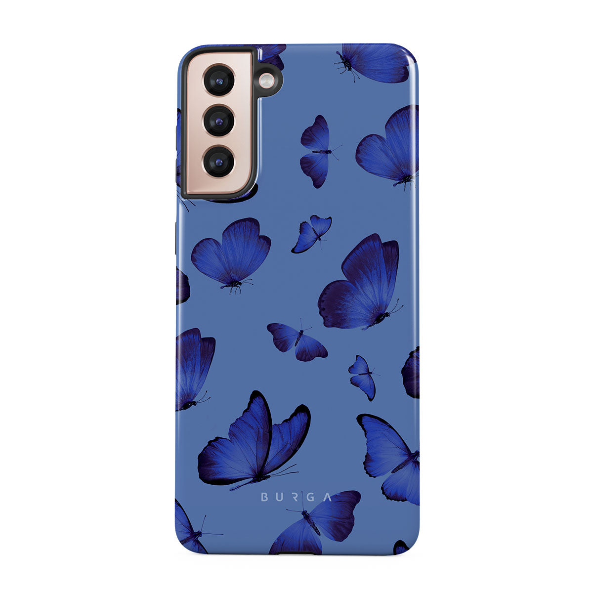 Bright blue butterflies dance across a sky-blue expanse, a visual representation of freedom and transformation. Our Spring Court Samsung Galaxy S21 Plus phone case design symbolizes the soul's eternal dance with change, each flutter a step towards becoming who we are meant to be.