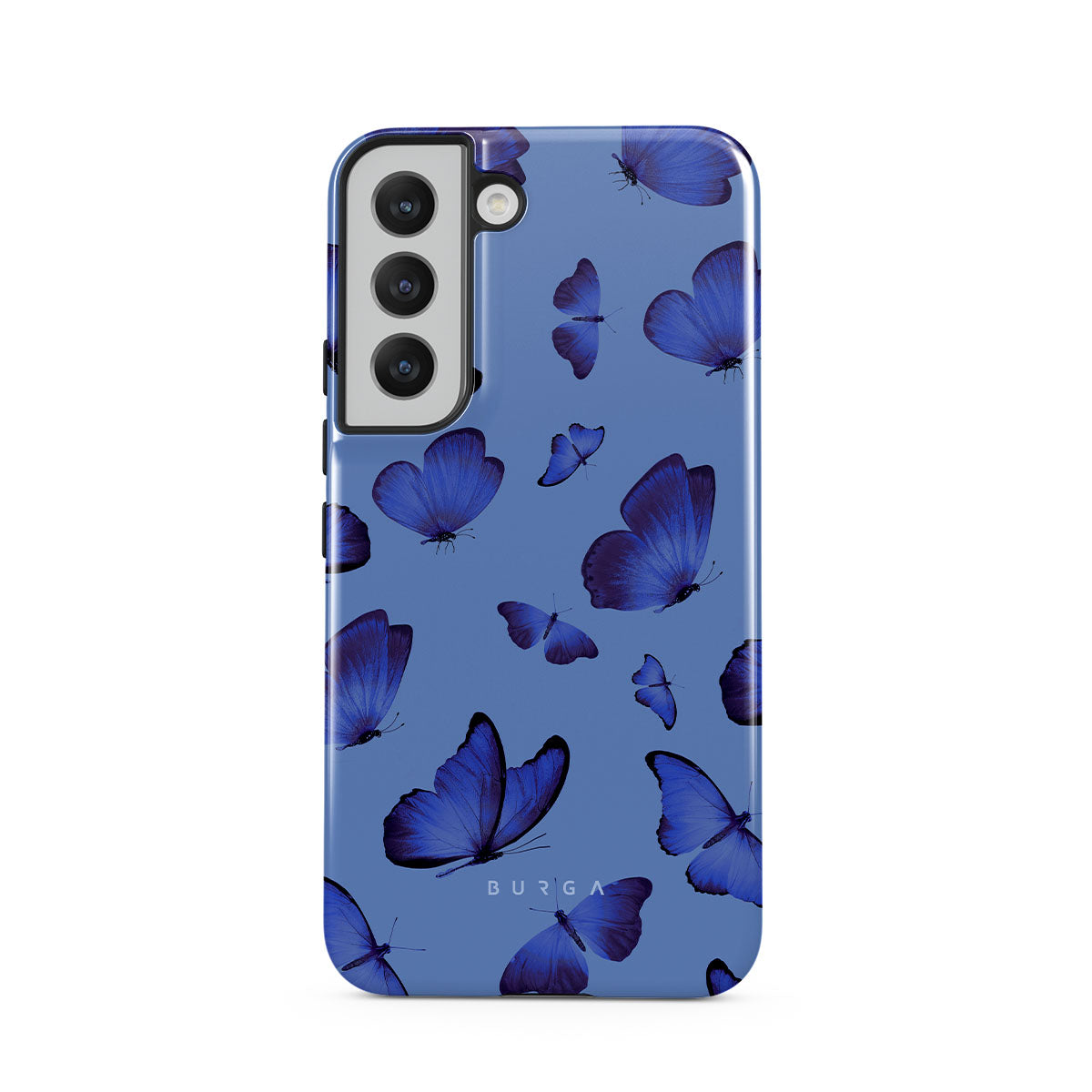 Bright blue butterflies dance across a sky-blue expanse, a visual representation of freedom and transformation. Our Spring Court Samsung Galaxy S22 phone case design symbolizes the soul's eternal dance with change, each flutter a step towards becoming who we are meant to be.