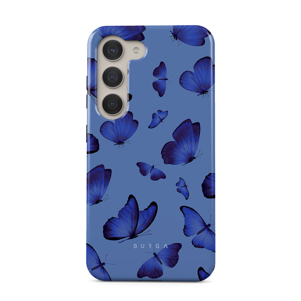 Bright blue butterflies dance across a sky-blue expanse, a visual representation of freedom and transformation. Our Spring Court Samsung Galaxy S23 phone case design symbolizes the soul's eternal dance with change, each flutter a step towards becoming who we are meant to be.
