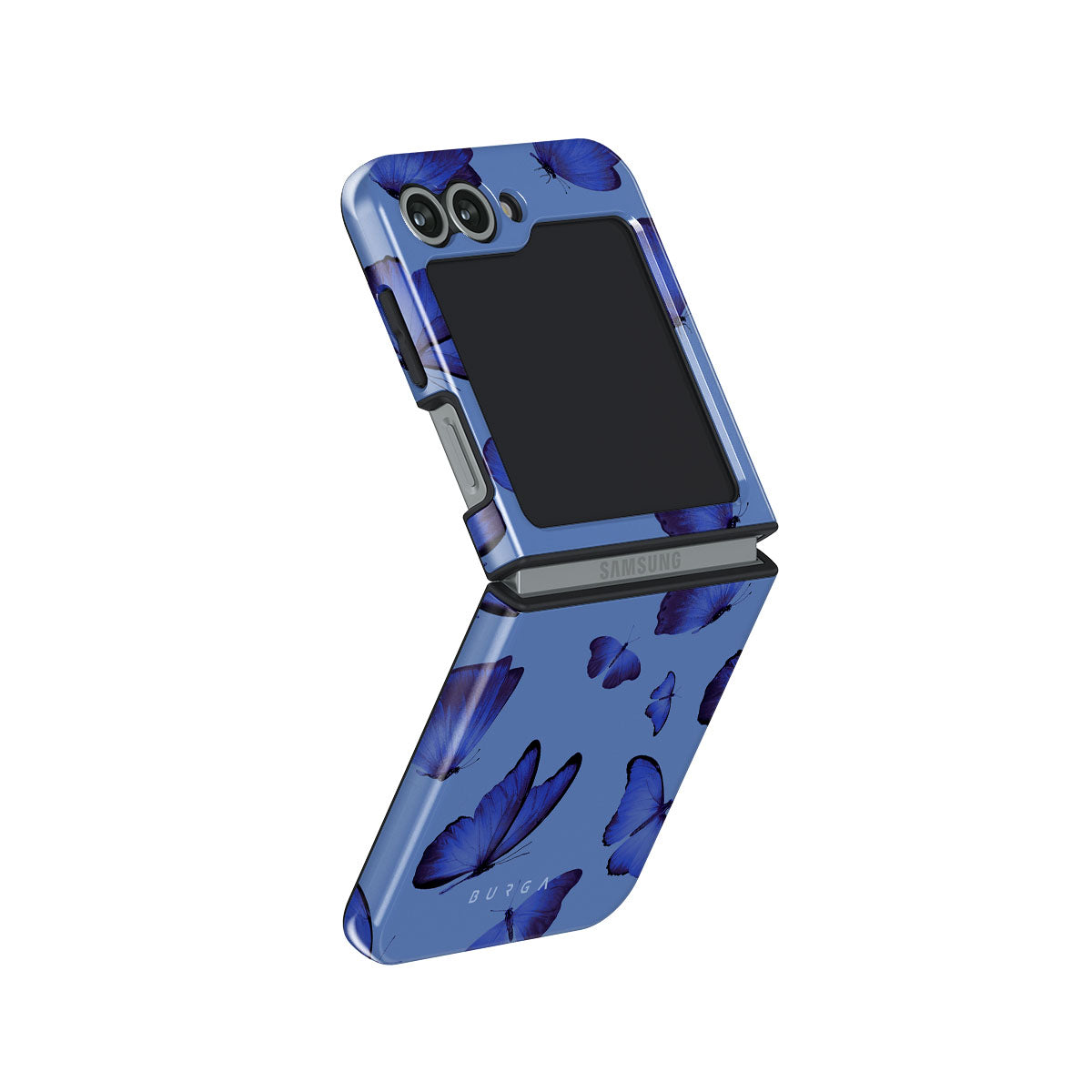 Bright blue butterflies dance across a sky-blue expanse, a visual representation of freedom and transformation. Our Spring Court Samsung Galaxy Z Flip 6 phone case design symbolizes the soul's eternal dance with change, each flutter a step towards becoming who we are meant to be.
