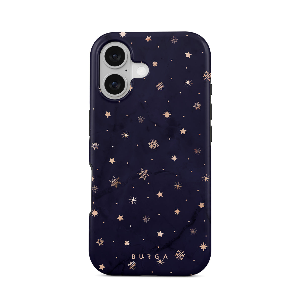 With a dreamy combination of dark blue and golden colors in the pretty star pattern found in our Midnight Kiss iPhone 17 phone case, you can protect your phone and add a magical feel to it just in one go.