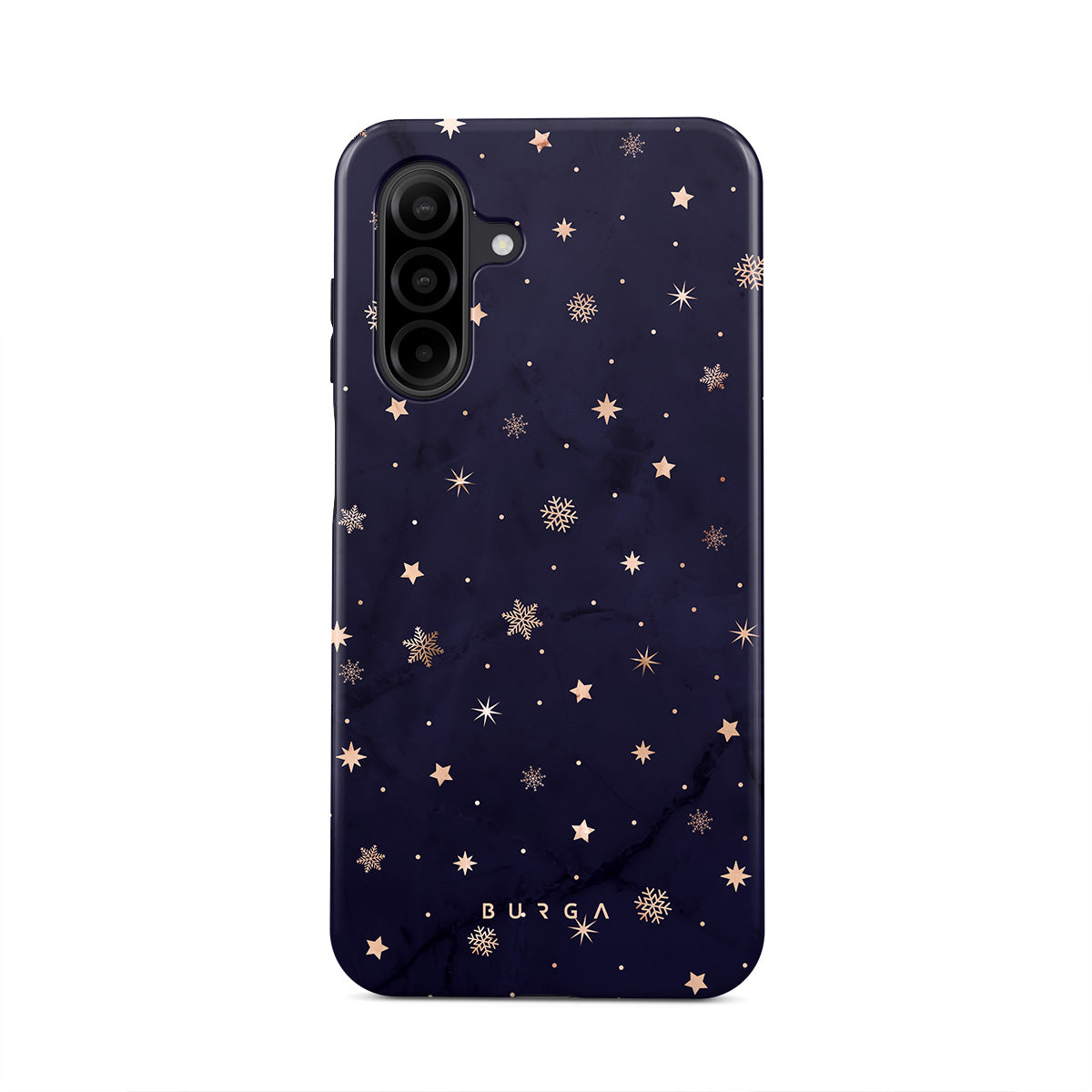 With a dreamy combination of dark blue and golden colors in the pretty star pattern found in our Midnight Kiss Samsung Galaxy A26 5G phone case, you can protect your phone and add a magical feel to it just in one go.