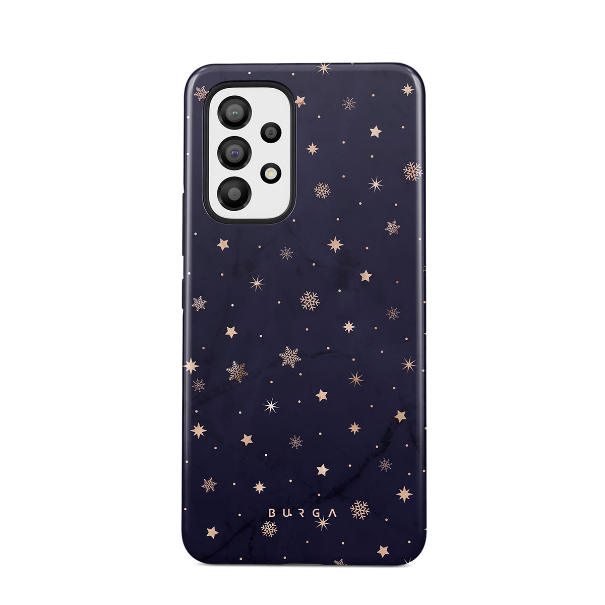 With a dreamy combination of dark blue and golden colors in the pretty star pattern found in our Midnight Kiss Samsung Galaxy A33 phone case, you can protect your phone and add a magical feel to it just in one go.