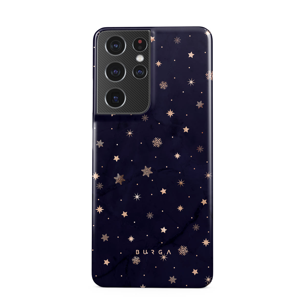 With a dreamy combination of dark blue and golden colors in the pretty star pattern found in our Midnight Kiss Samsung Galaxy S21 Ultra phone case, you can protect your phone and add a magical feel to it just in one go.