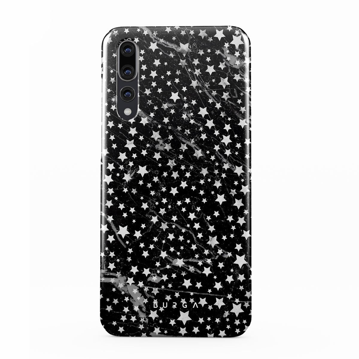 Huawei P20 phone case is inspired by the sky above us. Here the charming star pattern meets with a trendy black and white marble. Add the unique combination to your wardrobe and transform your protective phone case into a fashion accessory.