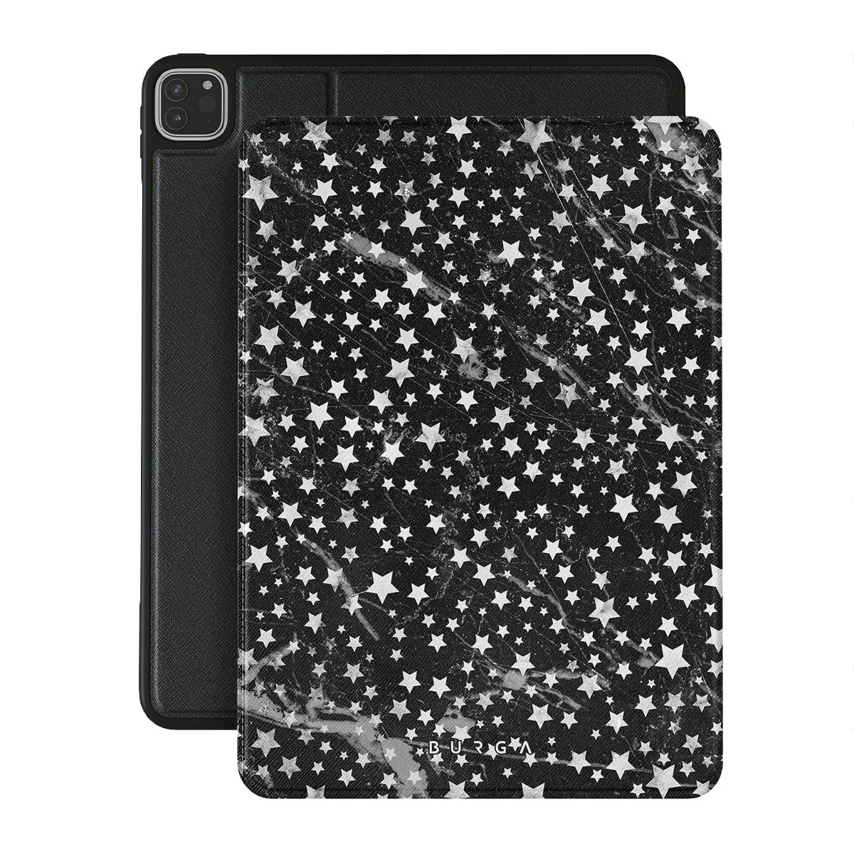 Dark, endless with flickering stars, the Starry Night iPad Pro 11 (4th/3rd Gen) folio case is inspired by the sky above us. Here the charming star pattern meets with a trendy black and white marble. Add the unique combination to your wardrobe and transform your protective iPad case cover into a fashion accessory.
