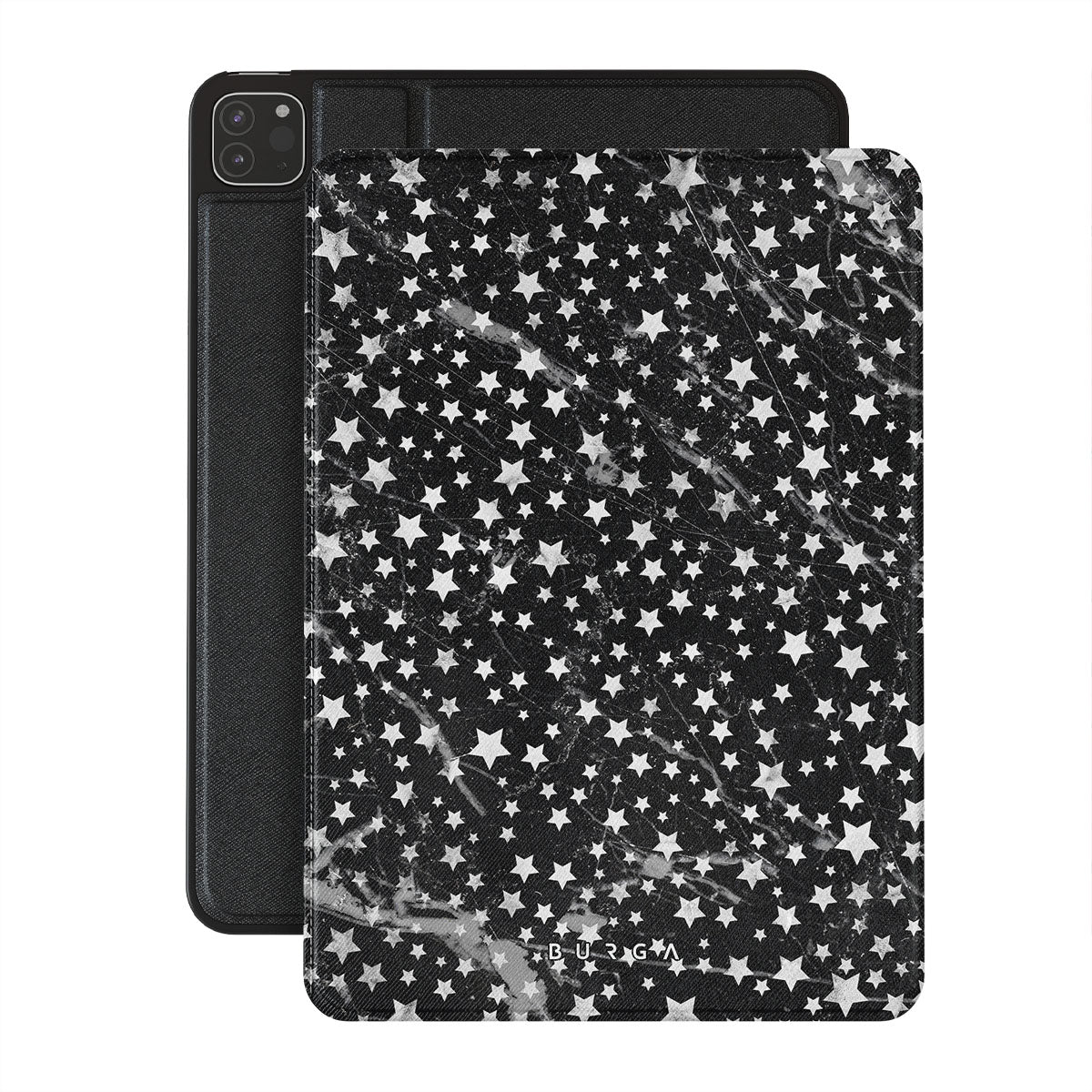 Dark, endless with flickering stars, the Starry Night iPad Pro 12.9 (4th/3rd Gen) folio case is inspired by the sky above us. Here the charming star pattern meets with a trendy black and white marble. Add the unique combination to your wardrobe and transform your protective iPad case cover into a fashion accessory.