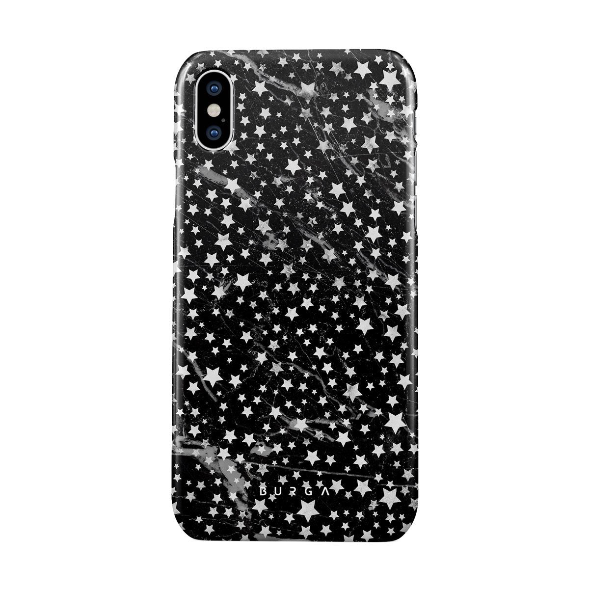 iPhone X / XS phone case is inspired by the sky above us. Here the charming star pattern meets with a trendy black and white marble. Add the unique combination to your wardrobe and transform your protective phone case into a fashion accessory.
