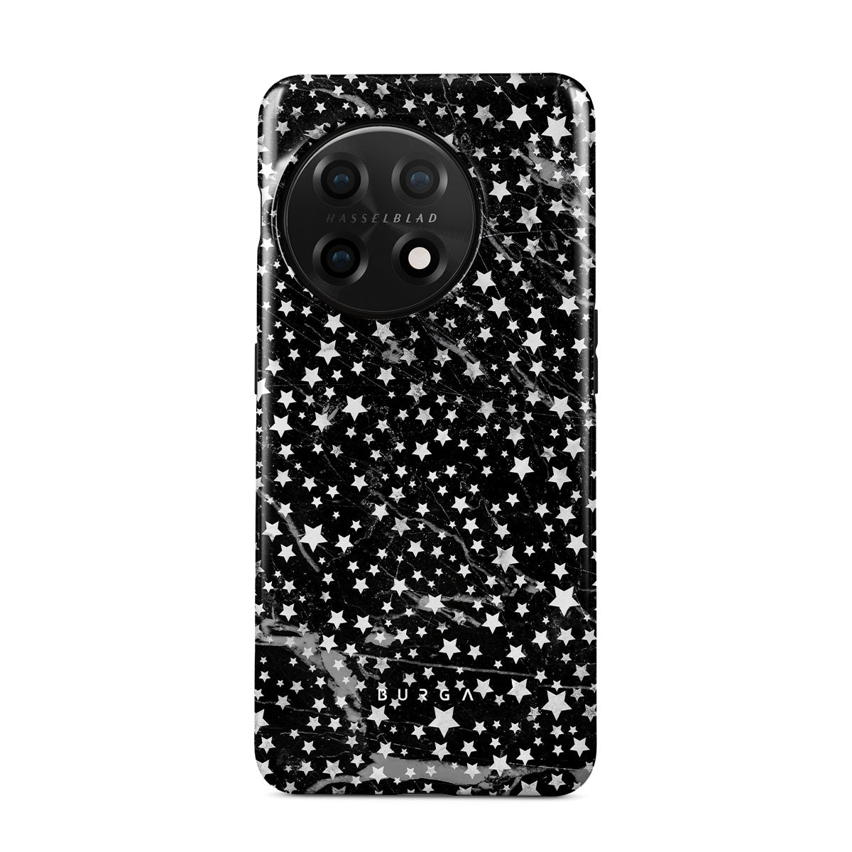 OnePlus 11 phone case is inspired by the sky above us. Here the charming star pattern meets with a trendy black and white marble. Add the unique combination to your wardrobe and transform your protective phone case into a fashion accessory.