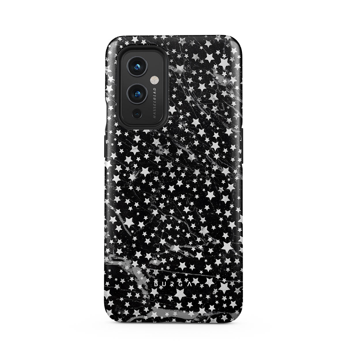 OnePlus 9 phone case is inspired by the sky above us. Here the charming star pattern meets with a trendy black and white marble. Add the unique combination to your wardrobe and transform your protective phone case into a fashion accessory.