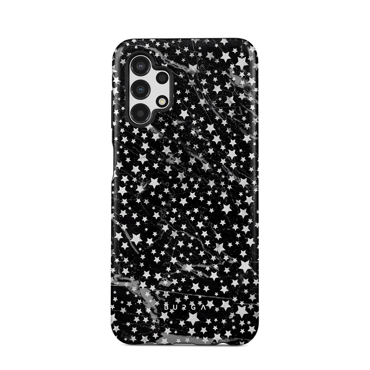 Samsung Galaxy A13 4G phone case is inspired by the sky above us. Here the charming star pattern meets with a trendy black and white marble. Add the unique combination to your wardrobe and transform your protective phone case into a fashion accessory.