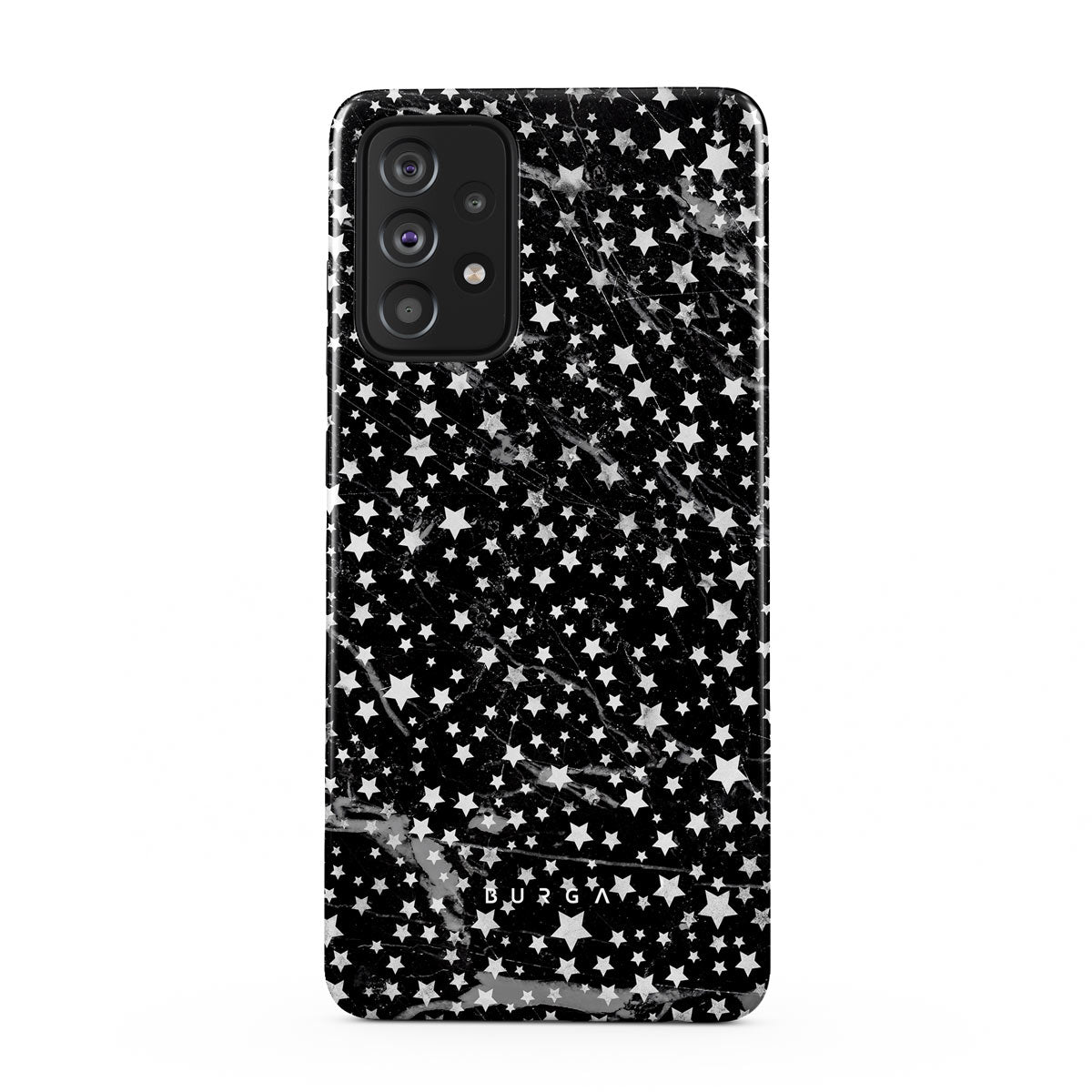 Samsung Galaxy A52 / A52S 4G / 5G phone case is inspired by the sky above us. Here the charming star pattern meets with a trendy black and white marble. Add the unique combination to your wardrobe and transform your protective phone case into a fashion accessory.