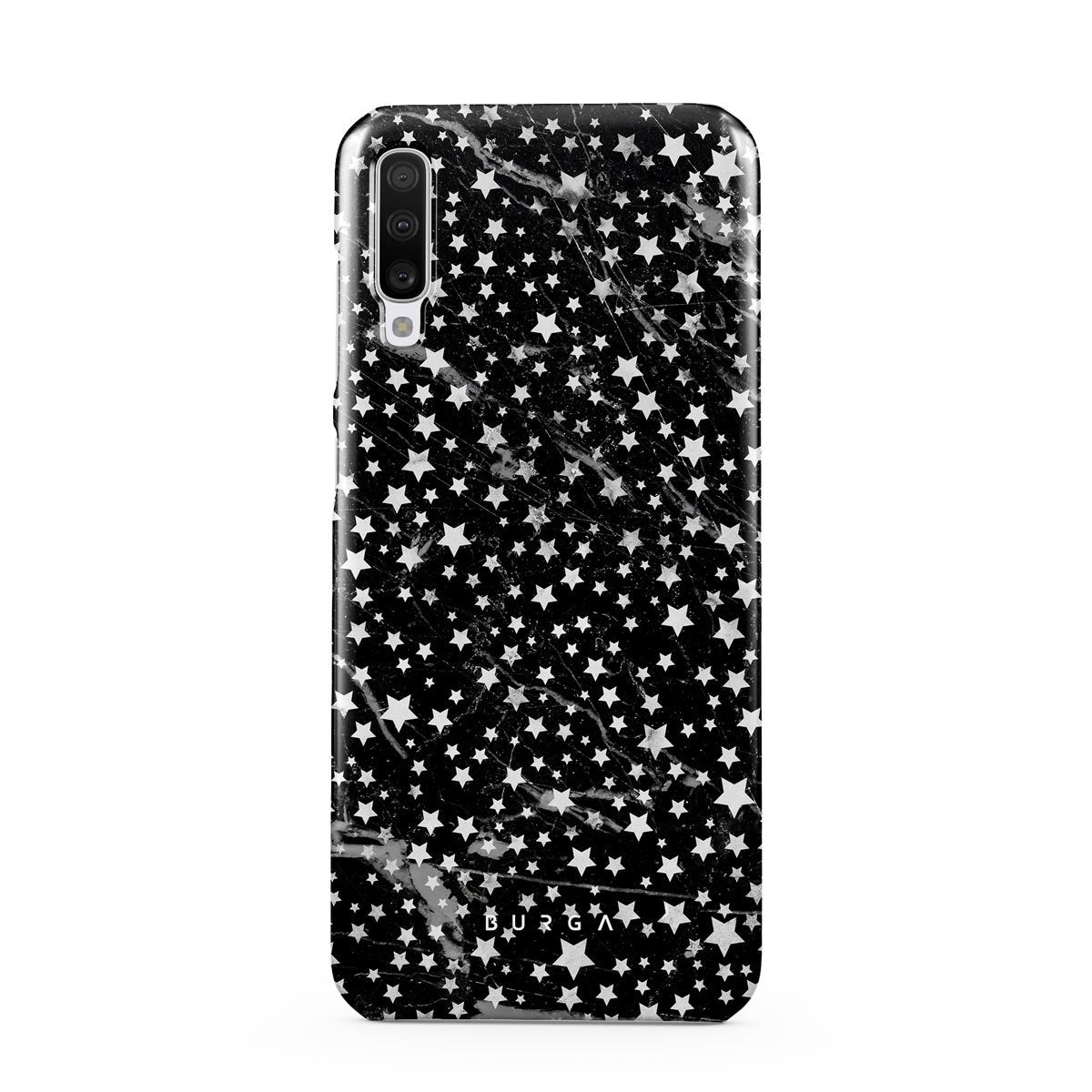 Samsung Galaxy A70 phone case is inspired by the sky above us. Here the charming star pattern meets with a trendy black and white marble. Add the unique combination to your wardrobe and transform your protective phone case into a fashion accessory.