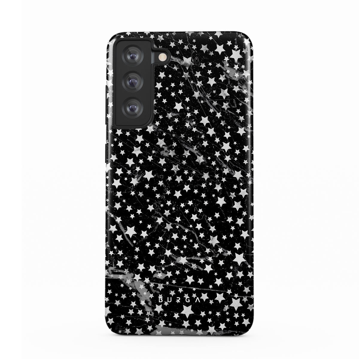 Samsung Galaxy S21 FE phone case is inspired by the sky above us. Here the charming star pattern meets with a trendy black and white marble. Add the unique combination to your wardrobe and transform your protective phone case into a fashion accessory.