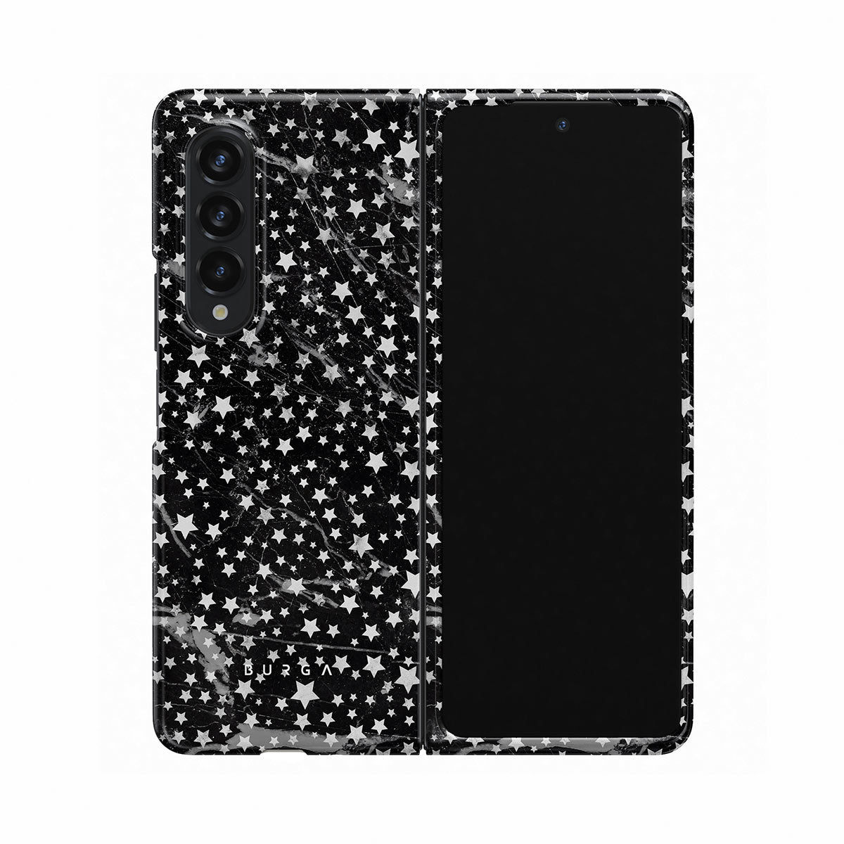 Samsung Galaxy Z Fold 3 phone case is inspired by the sky above us. Here the charming star pattern meets with a trendy black and white marble. Add the unique combination to your wardrobe and transform your protective phone case into a fashion accessory.