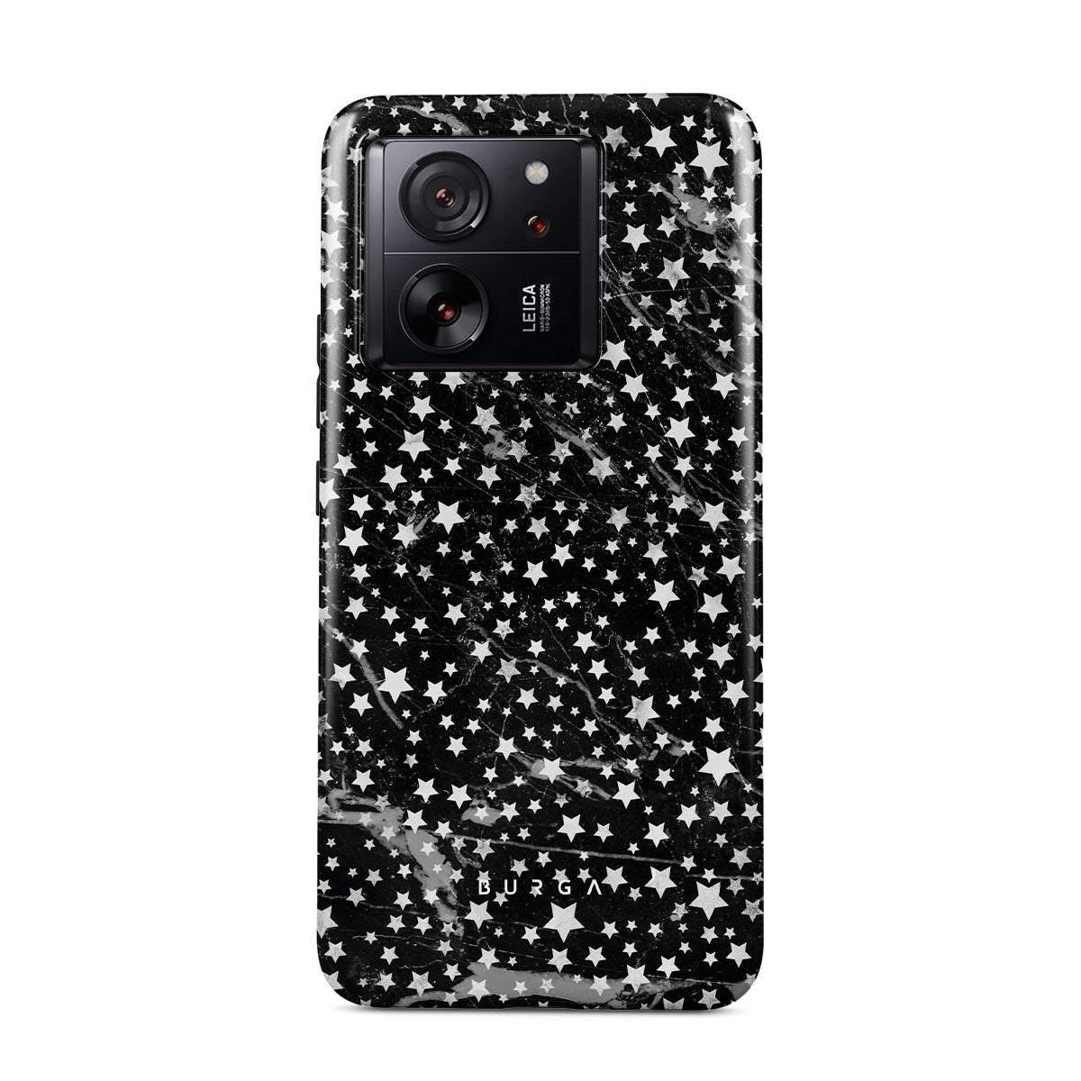 Xiaomi 13T phone case is inspired by the sky above us. Here the charming star pattern meets with a trendy black and white marble. Add the unique combination to your wardrobe and transform your protective phone case into a fashion accessory.