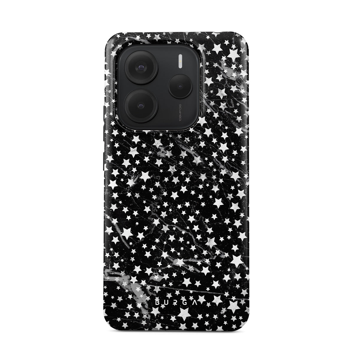 Xiaomi Redmi Note 14 5G phone case is inspired by the sky above us. Here the charming star pattern meets with a trendy black and white marble. Add the unique combination to your wardrobe and transform your protective phone case into a fashion accessory.