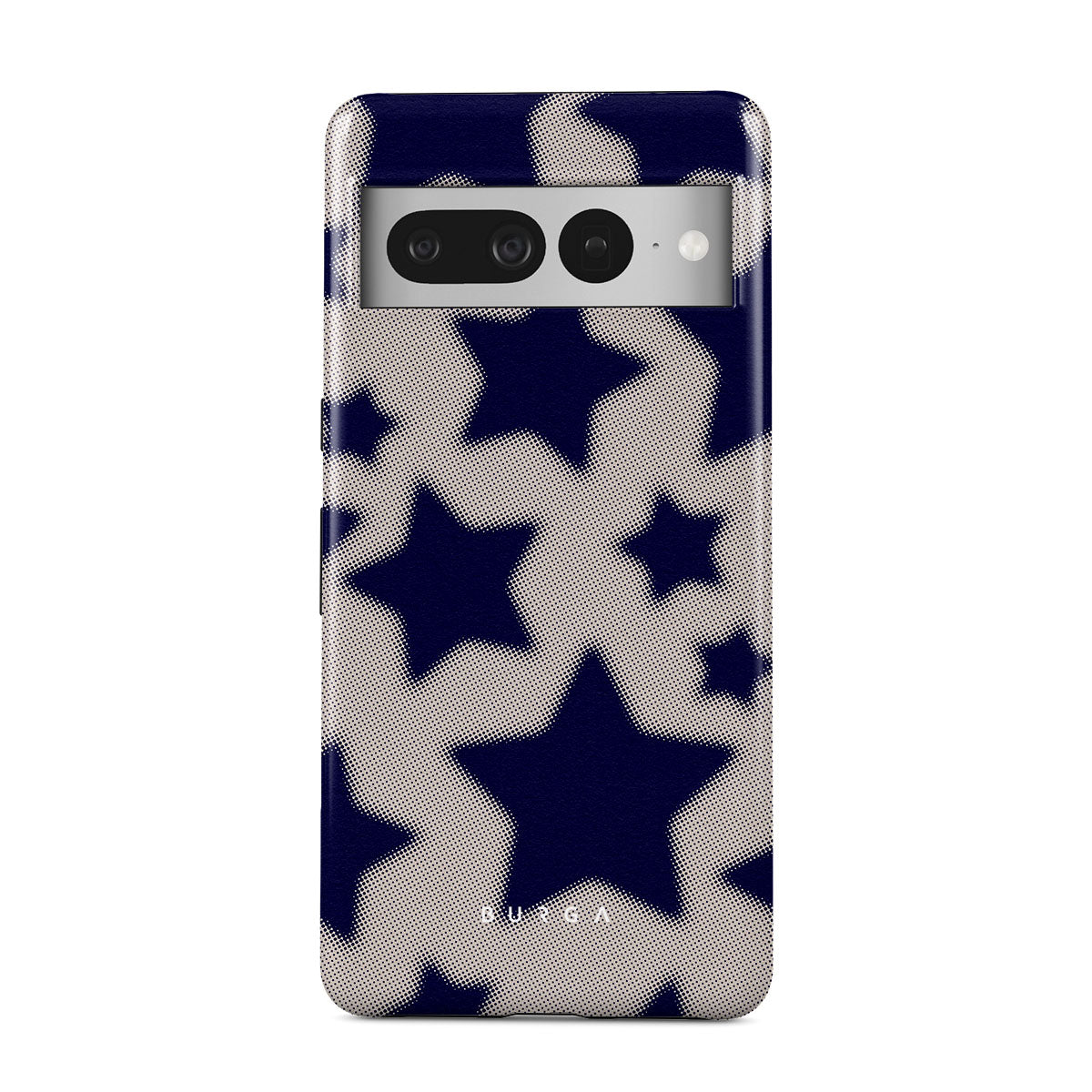 Rock a touch of '90s nostalgia with the Starstruck Google Pixel 7 Pro phone case design. Its nude background is scattered with bold blue stars; each star hints at stories of hope and youthful dreams, blending simplicity with depth.