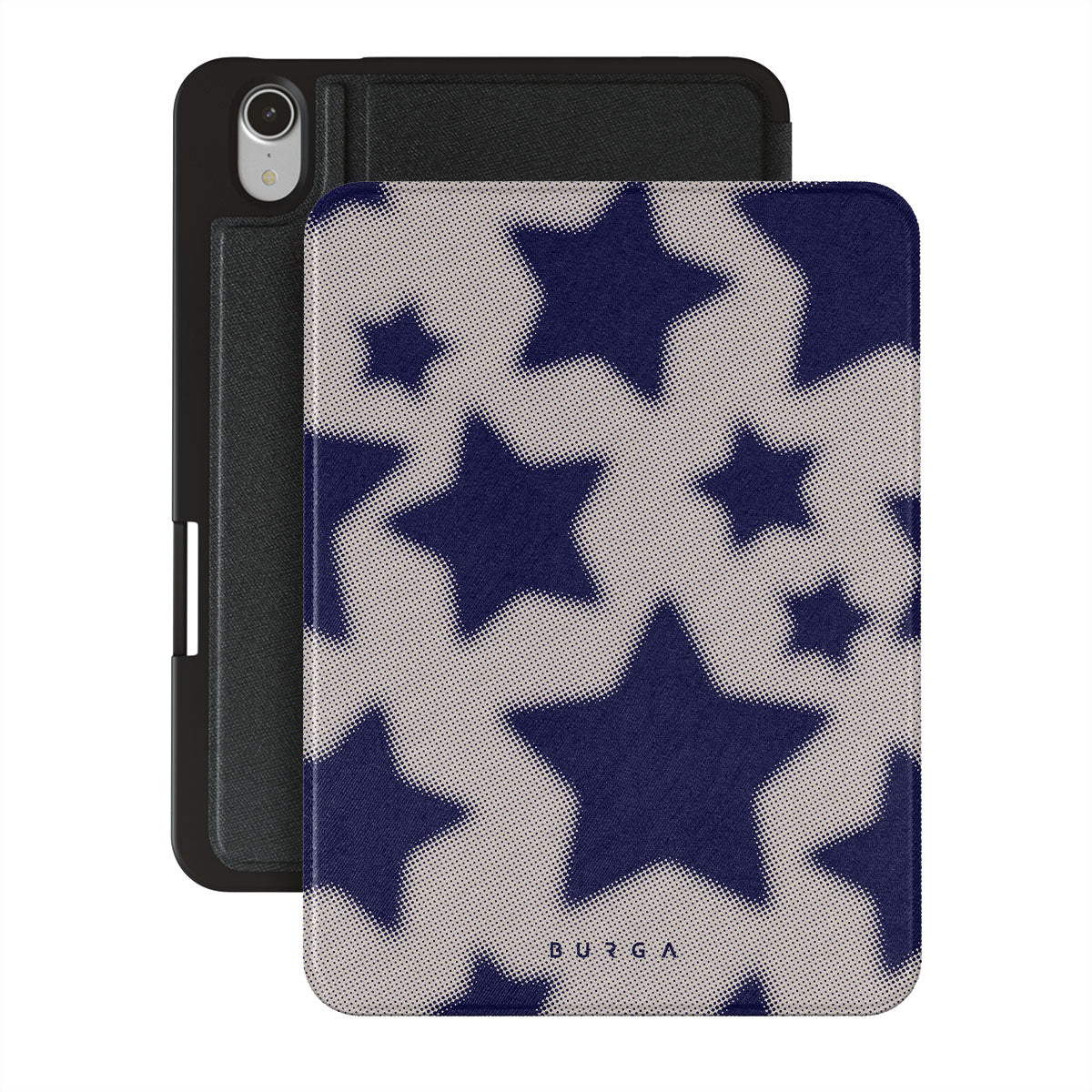 Rock a touch of '90s nostalgia with the Starstruck iPad Mini 8.3 (A17 Pro/6th Gen) 2021 folio case design. Its nude background is scattered with bold blue stars; each star hints at stories of hope and youthful dreams, blending simplicity with depth.