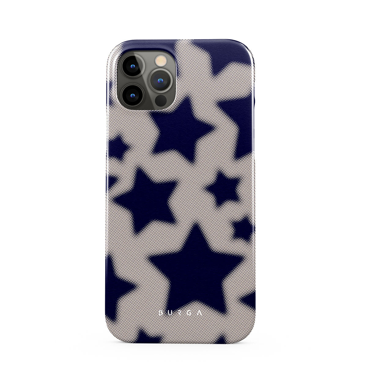 Rock a touch of '90s nostalgia with the Starstruck iPhone 12 Pro Max phone case design. Its nude background is scattered with bold blue stars; each star hints at stories of hope and youthful dreams, blending simplicity with depth.