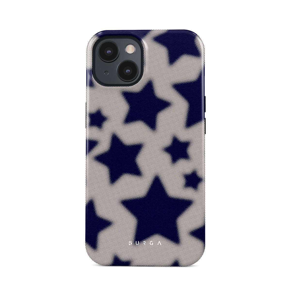 Rock a touch of '90s nostalgia with the Starstruck iPhone 15 phone case design. Its nude background is scattered with bold blue stars; each star hints at stories of hope and youthful dreams, blending simplicity with depth.