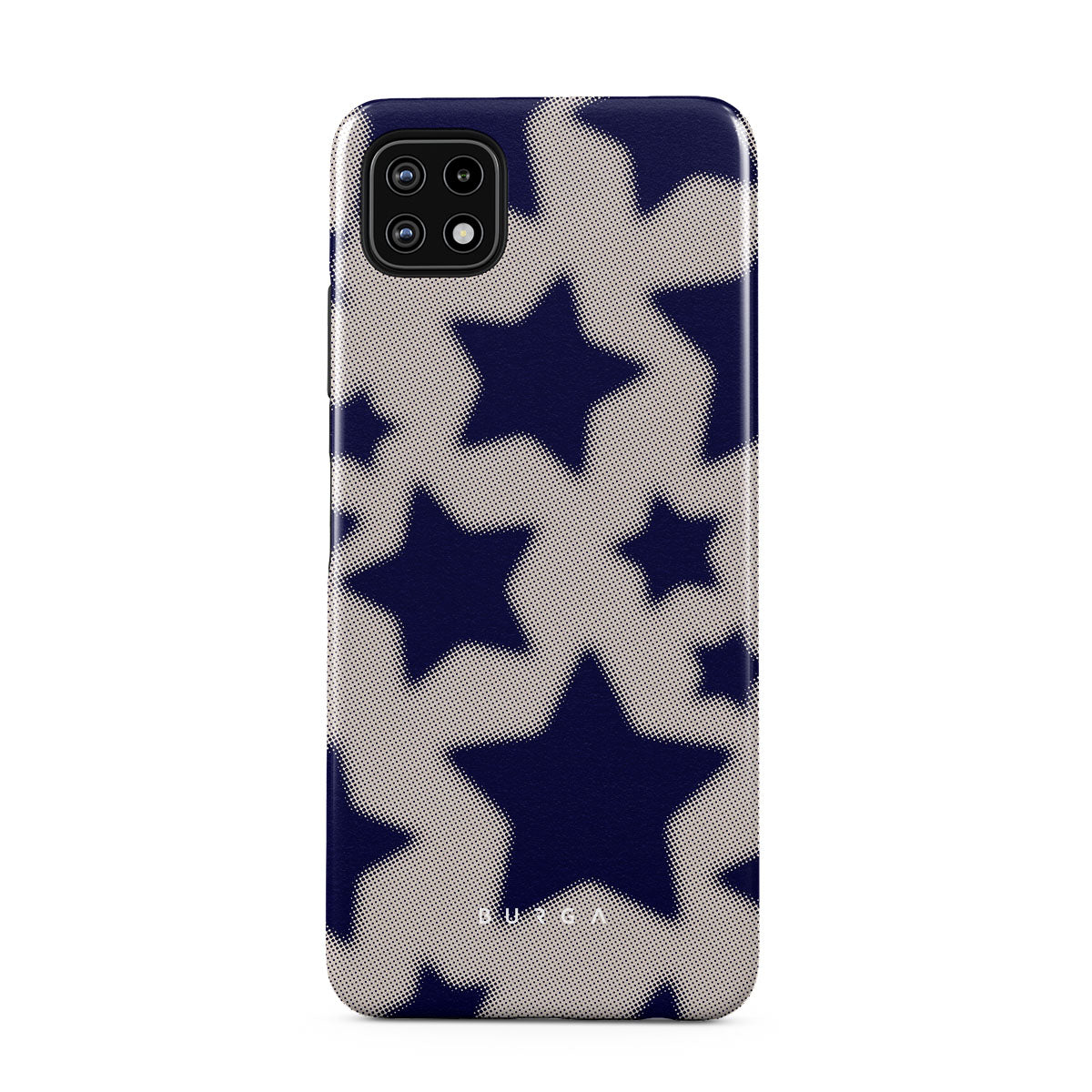 Rock a touch of '90s nostalgia with the Starstruck Samsung Galaxy A22 5G phone case design. Its nude background is scattered with bold blue stars; each star hints at stories of hope and youthful dreams, blending simplicity with depth.