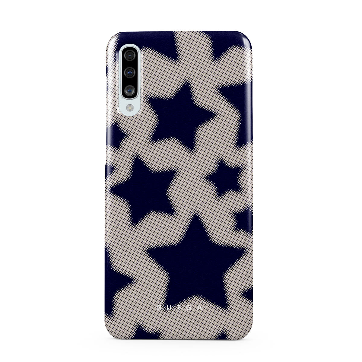 Rock a touch of '90s nostalgia with the Starstruck Samsung Galaxy A50 phone case design. Its nude background is scattered with bold blue stars; each star hints at stories of hope and youthful dreams, blending simplicity with depth.