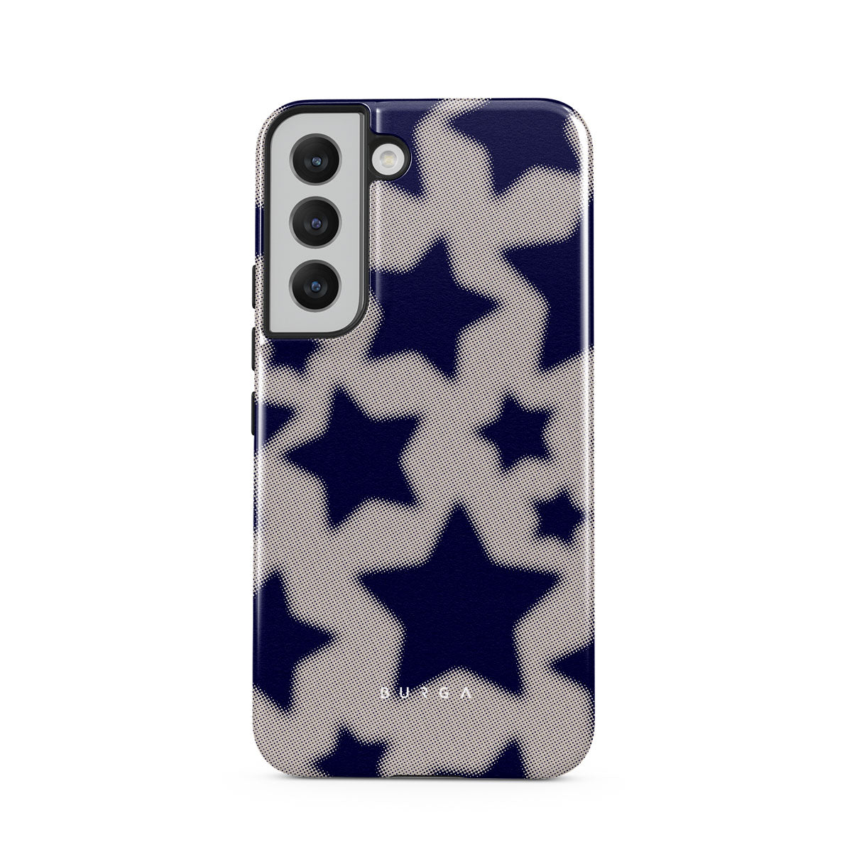 Rock a touch of '90s nostalgia with the Starstruck Samsung Galaxy S22 Plus phone case design. Its nude background is scattered with bold blue stars; each star hints at stories of hope and youthful dreams, blending simplicity with depth.