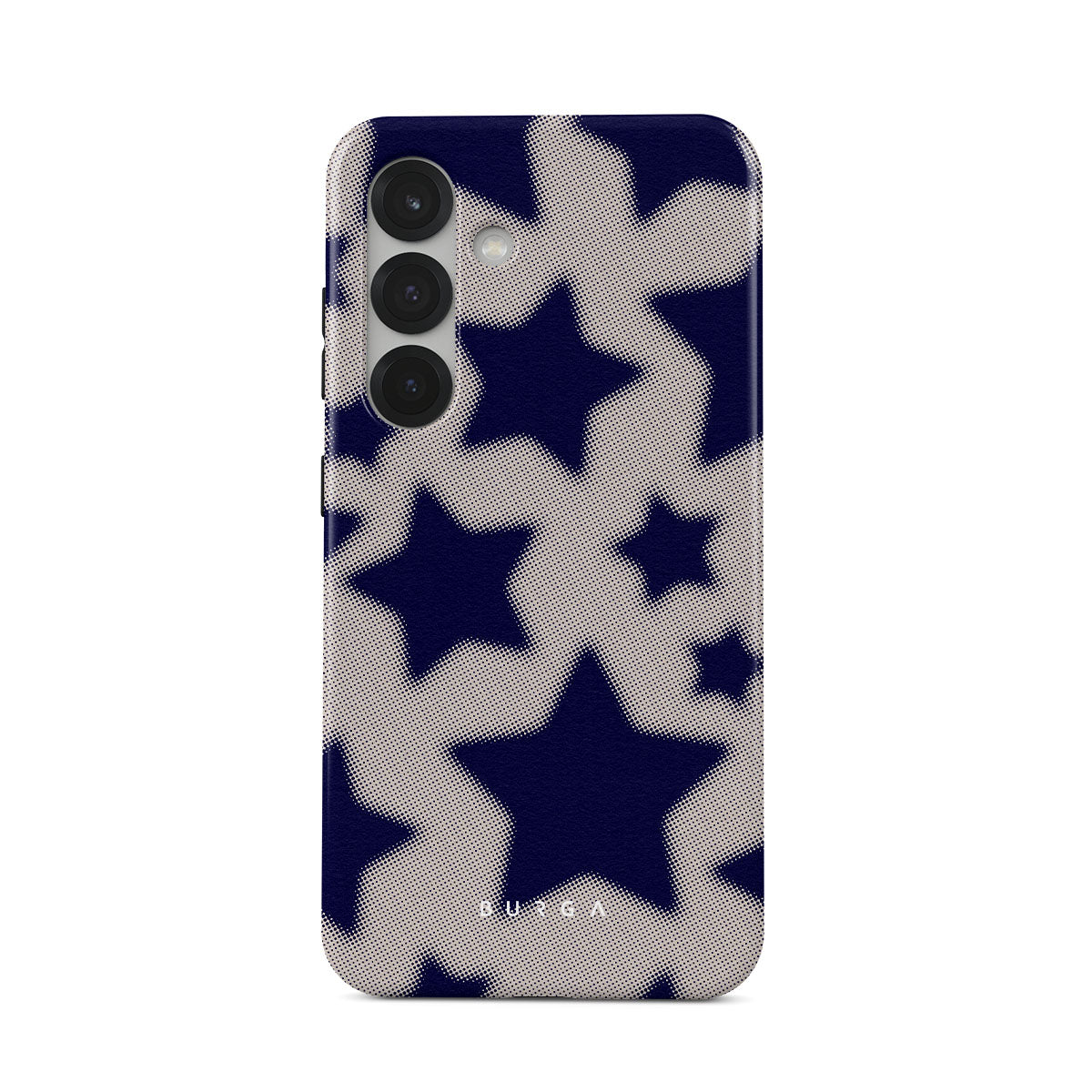 Rock a touch of '90s nostalgia with the Starstruck Samsung Galaxy S25 phone case design. Its nude background is scattered with bold blue stars; each star hints at stories of hope and youthful dreams, blending simplicity with depth.