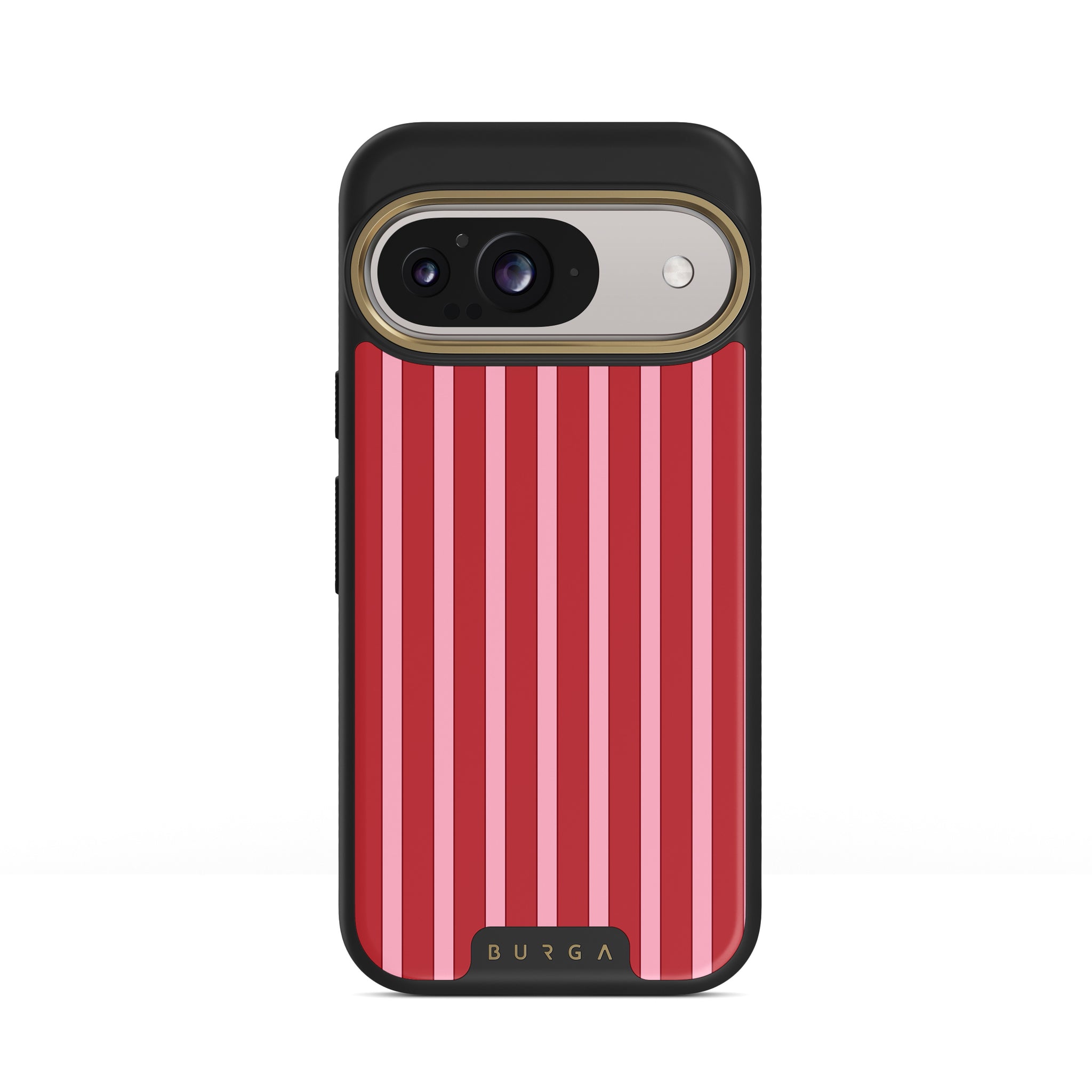 Stripes of red, like strawberry swirls on toast, this Google Pixel 10 phone case design brings the sweet memory of breakfasts that start with a spread of homemade love.